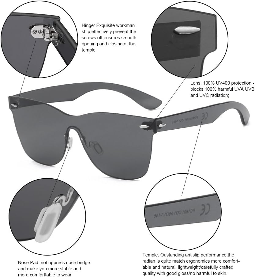 2020 VentiVenti Rimless Sunglasses For Women Men One Piece Square Oversize Mirror Lens Anti Reflective