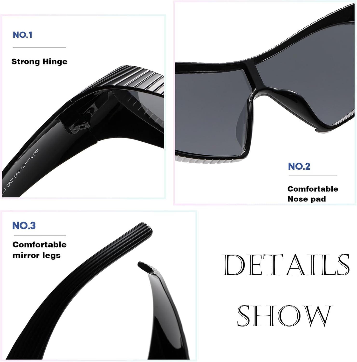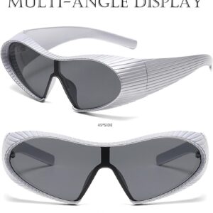 Bsreyeop Futuristic One-piece for Women Men Cyberpunk Mirrored Fashion Sun Shades for Costume Party Club