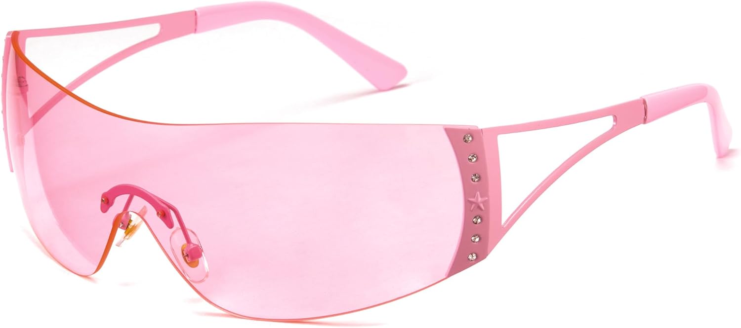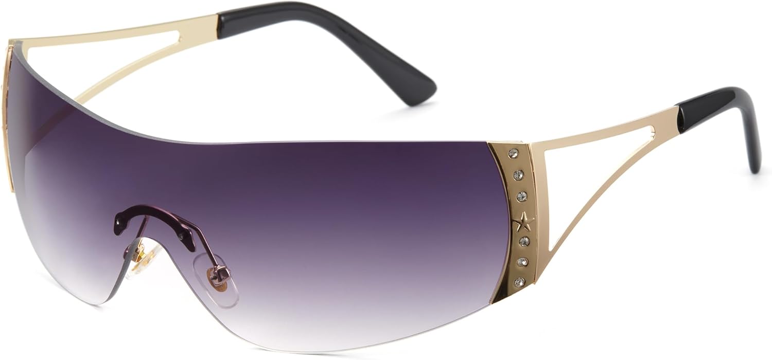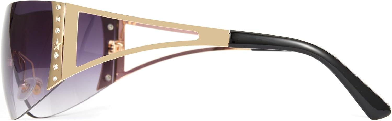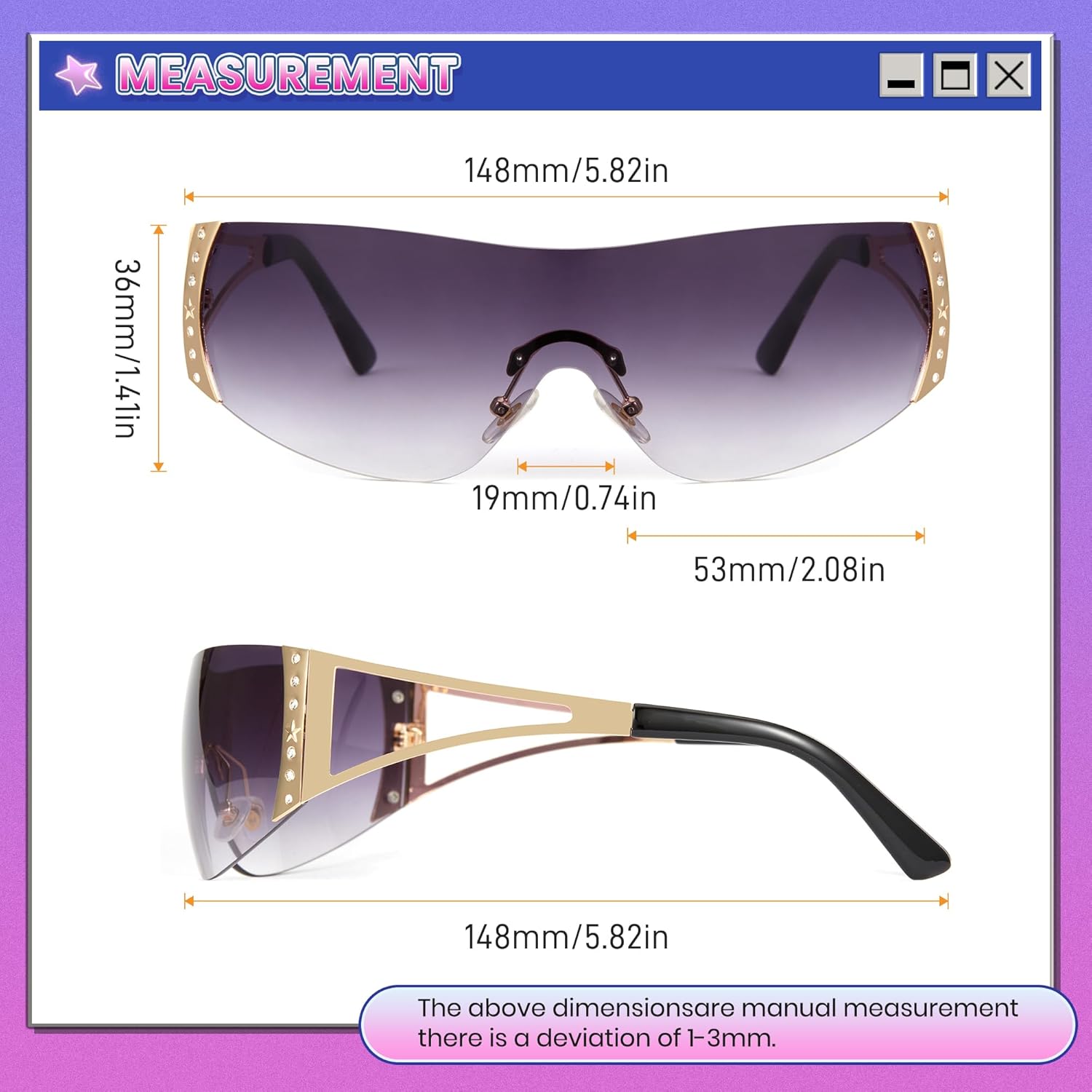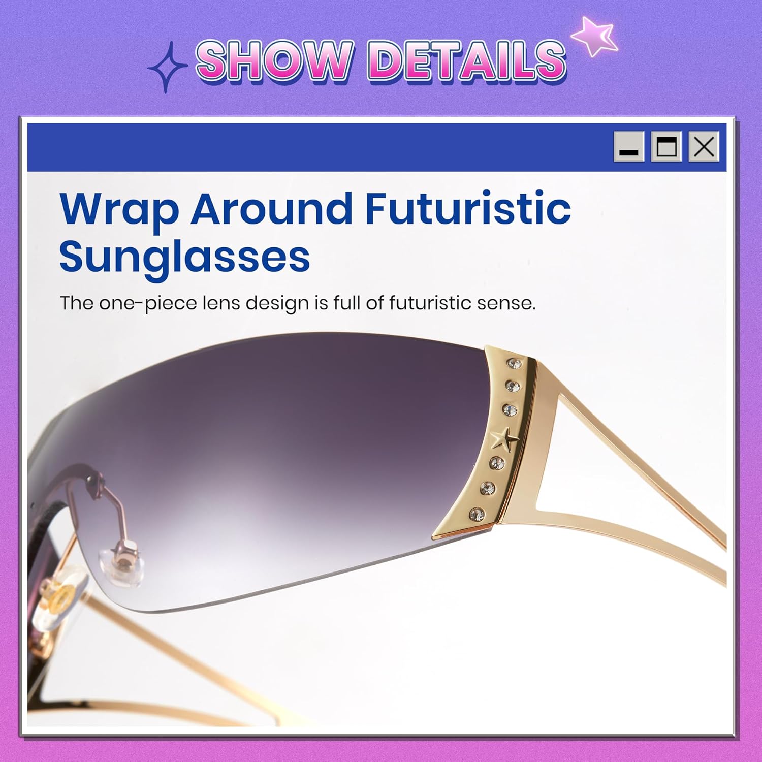 Cyxus Wrap Around Y2K Sunglasses for Women Men Shield Flat Top Sunglasses Futuristic Frameless Gradient Lens Sun Glasses