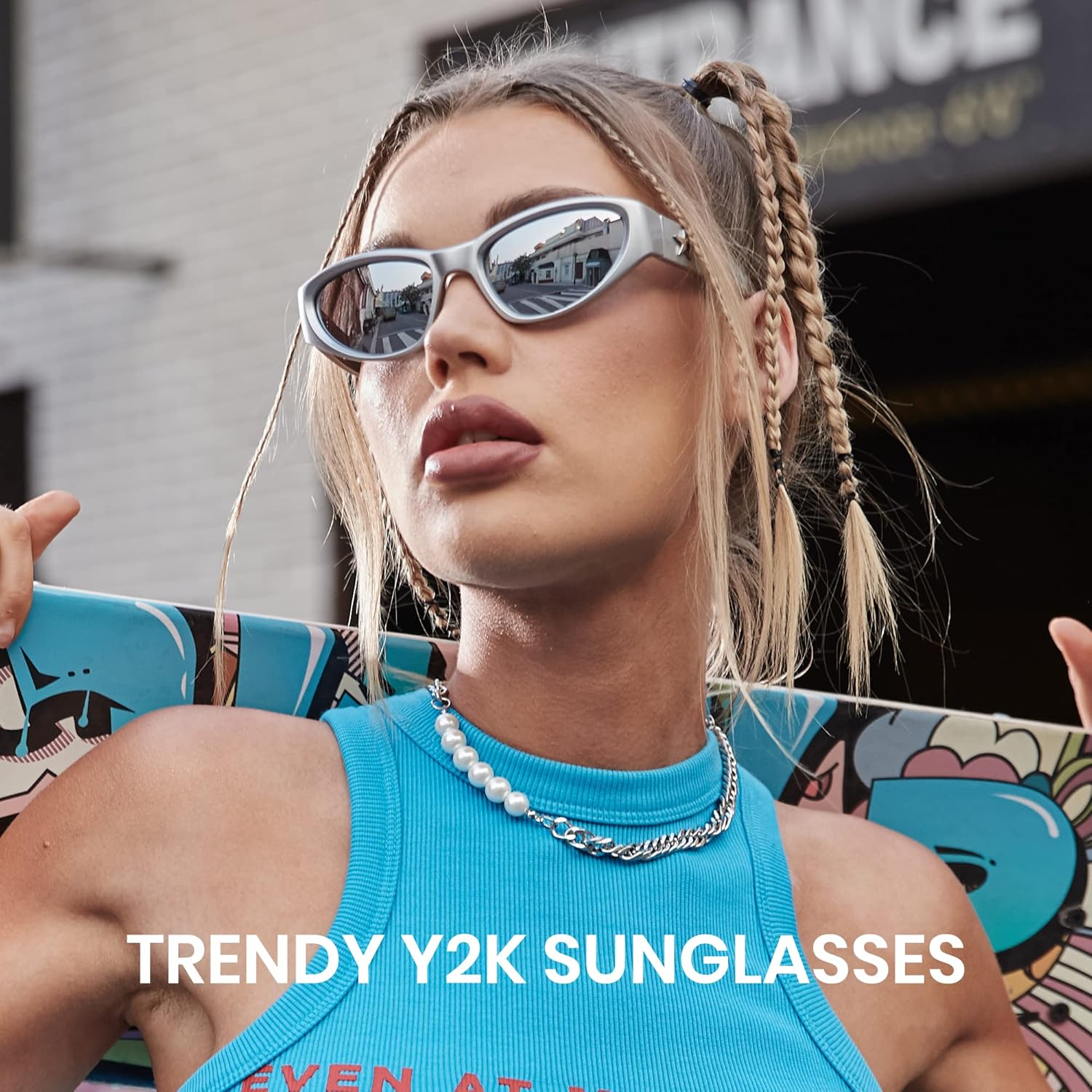 Cyxus Y2K Sunglasses Wrap Around Futuristic Sunglasses Women Men Swift Oval Fashion Sport Shades Trendy Sun Glasses 1084