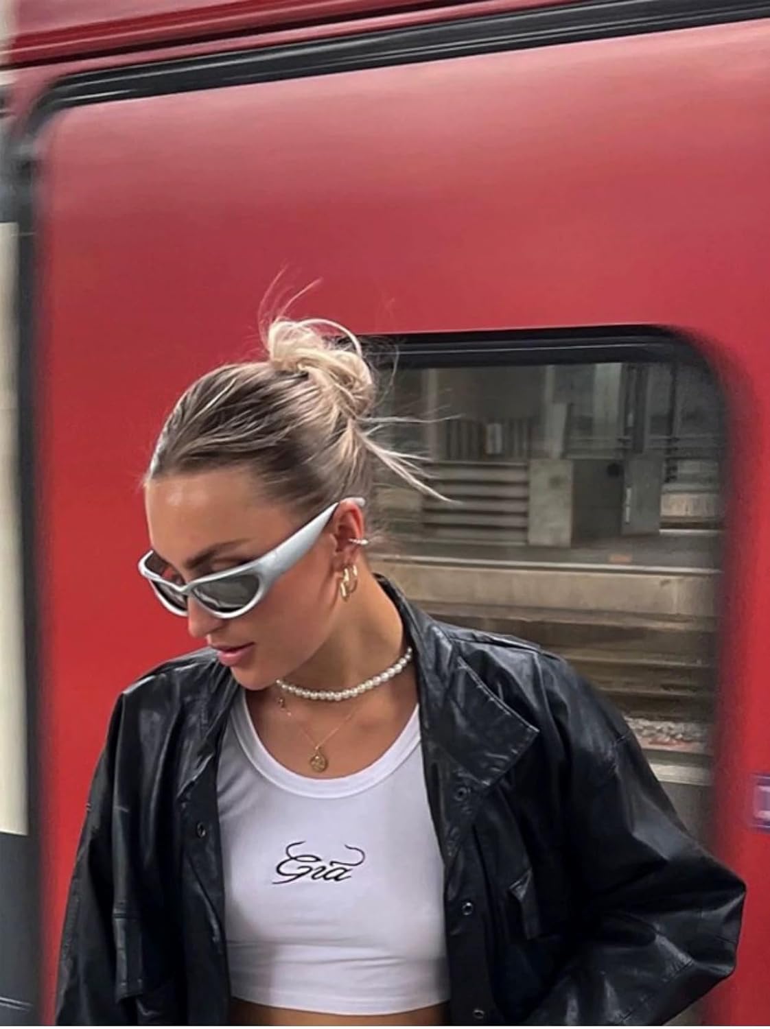 DAIMWEN Futuristic Sunglasses Thick Frame for Men Women Cool Oval Wrap Around Sport Sunglasses