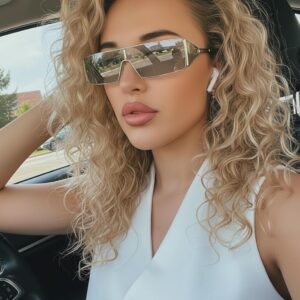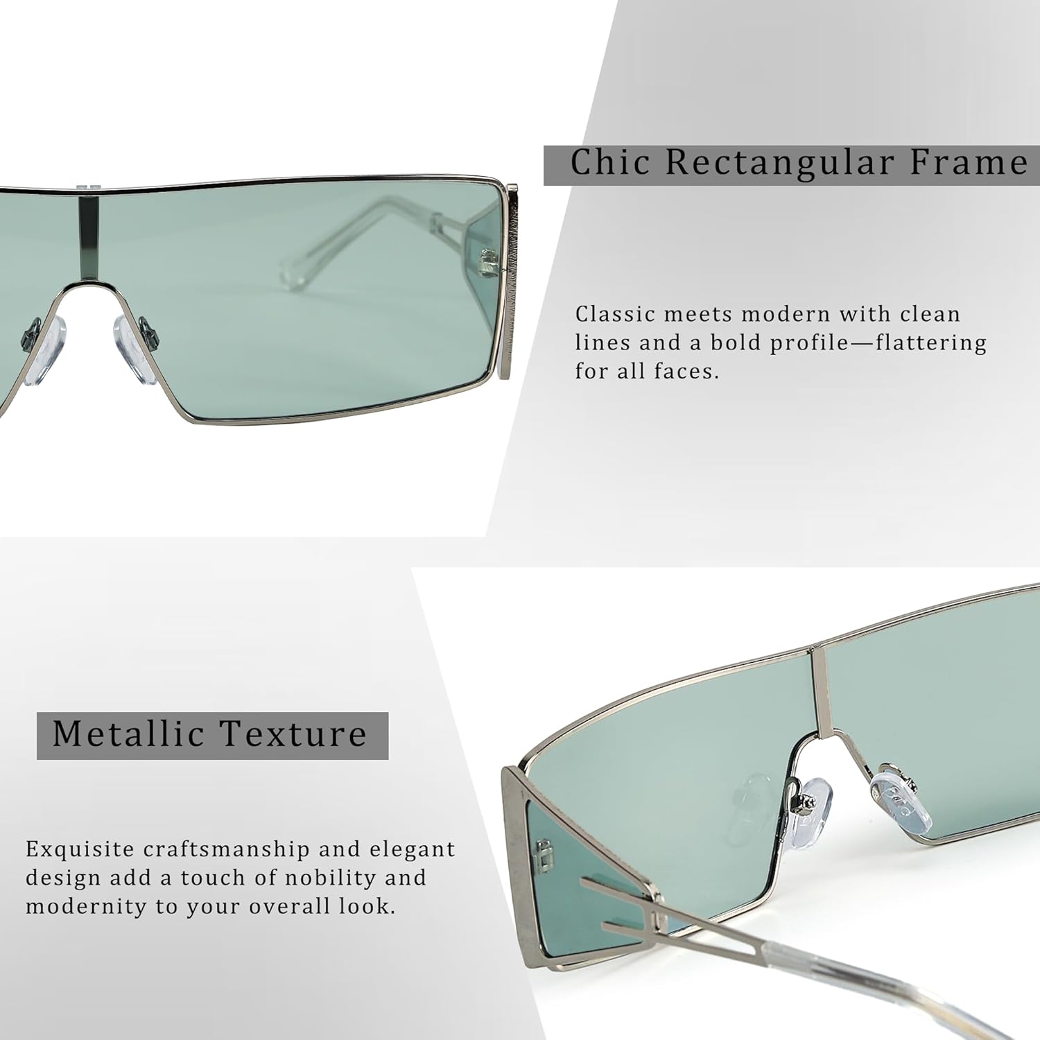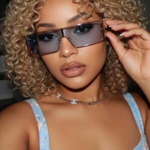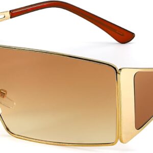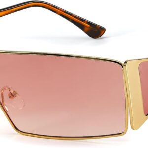 FancyPink Y2K Sunglasses for Women- Retro Rectangular Wrap Around Glasses -2000S Non-polarized Sun Glasses Metal Shades
