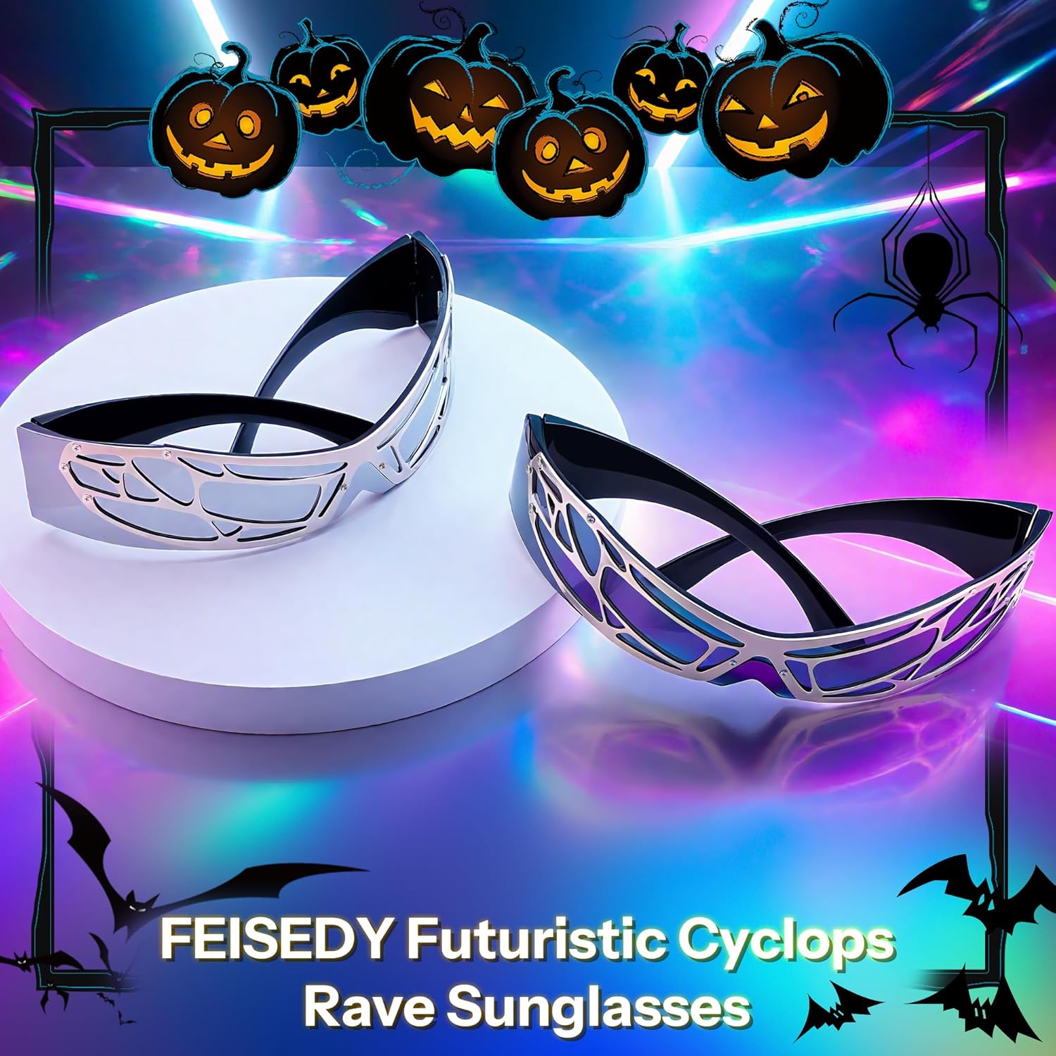 FEISEDY 80s Futuristic Cyclops Cyber Visor Sunglasses Men Women Punk Style Cosplay B4184