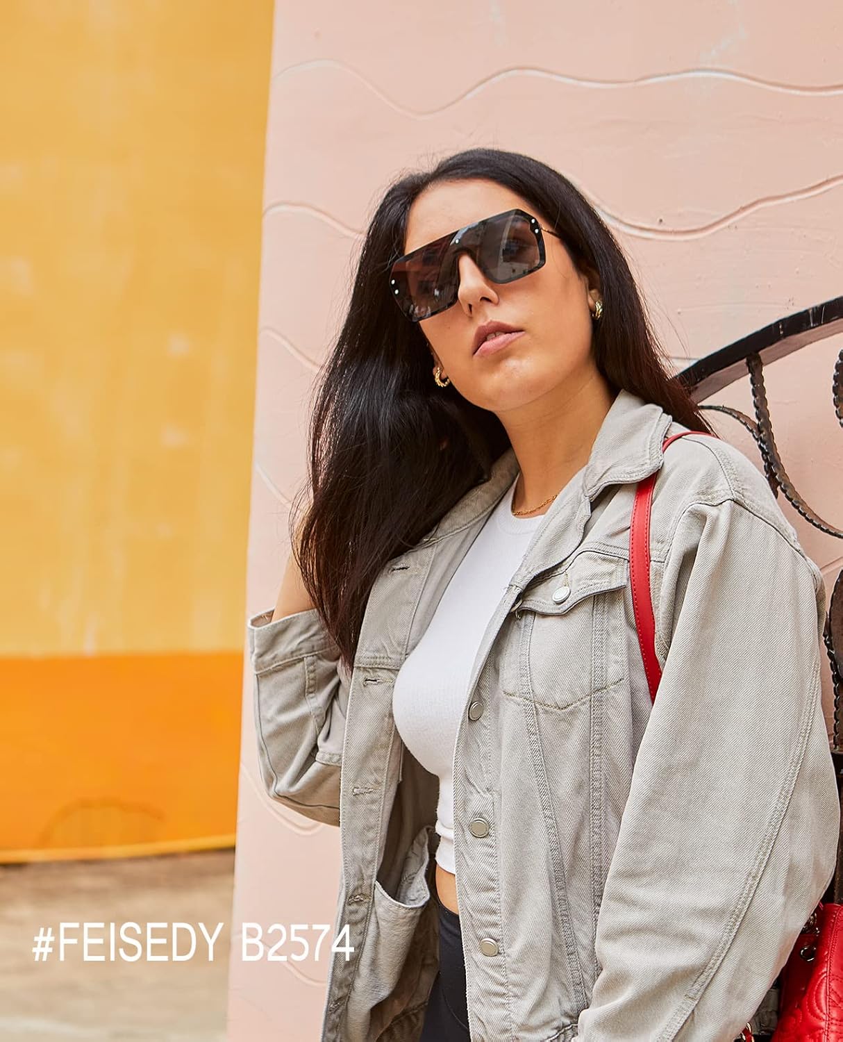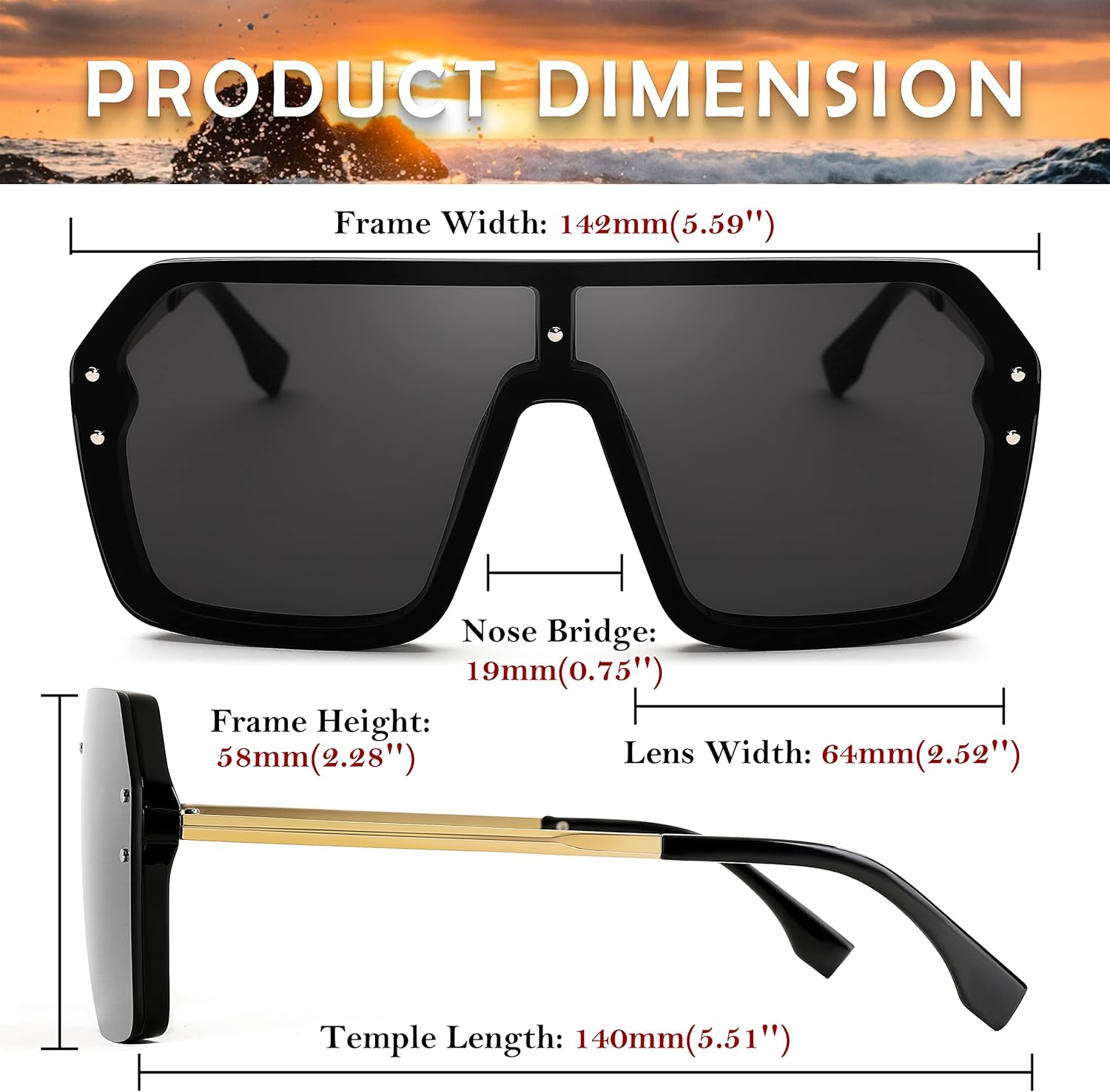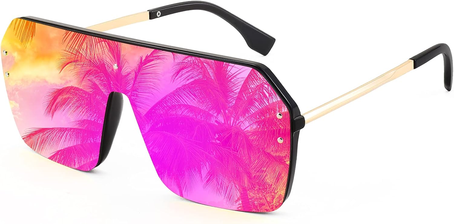 FEISEDY Classic Siamese One Piece Sunglasses Nice Rimless Stylish Retro Design for Women Men B2574