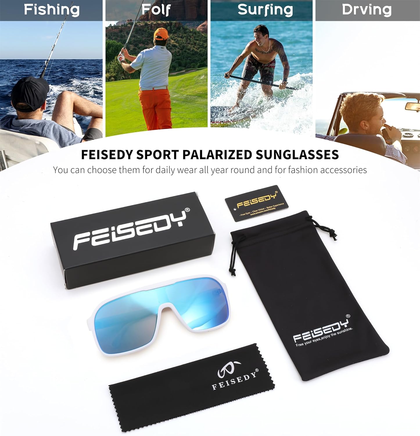 FEISEDY Fashion Polarized Sunglasses Oversized One Piece Reflective Lens Sports Sun Glasses B0122