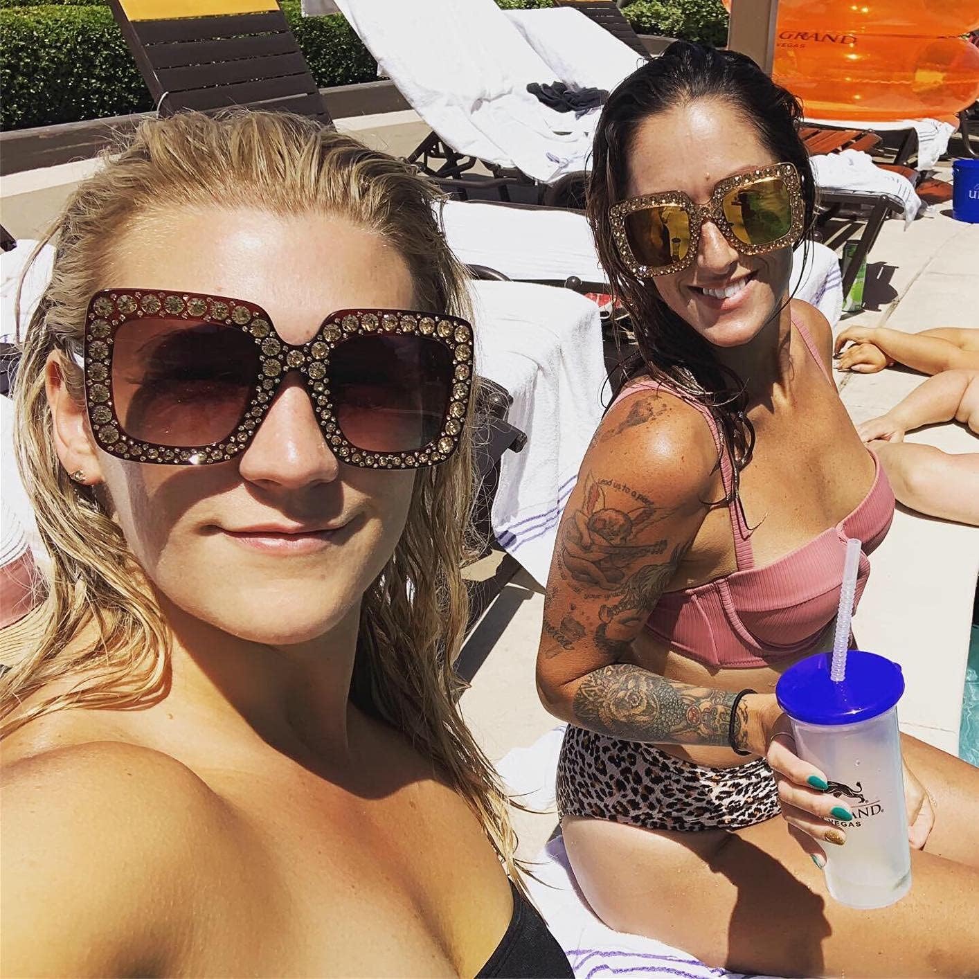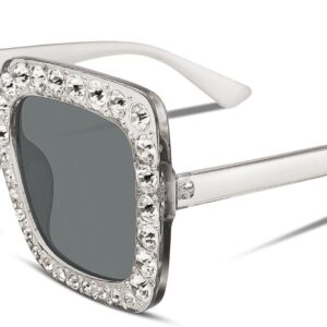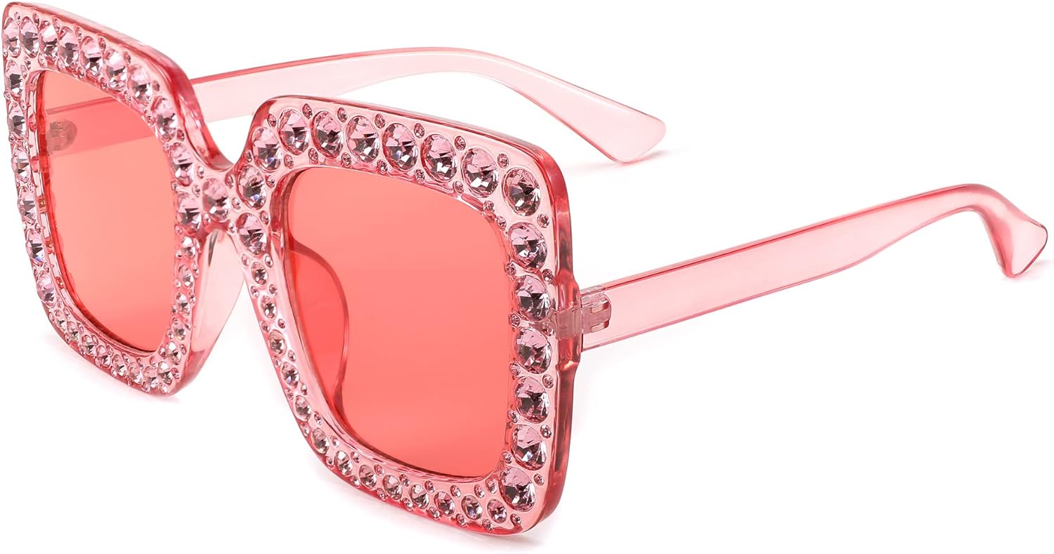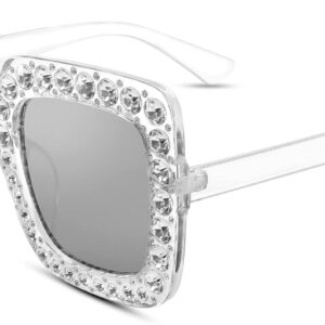 FEISEDY Women Sparkling Crystal Sunglasses Oversized Square Thick Frame B2283