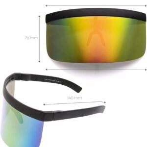 Futuristic Oversize Shield Visor Sunglasses Flat Top Mirrored