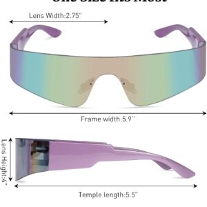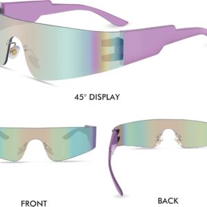 Futuristic Wrap Around Sunglasses Y2K Silver Trendy Rimless Glasses Cyberpunk Eyewear for Women Men Rave Party