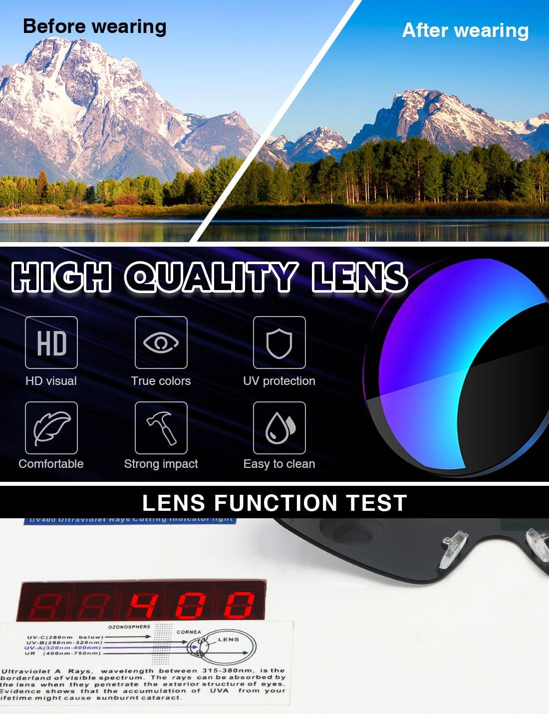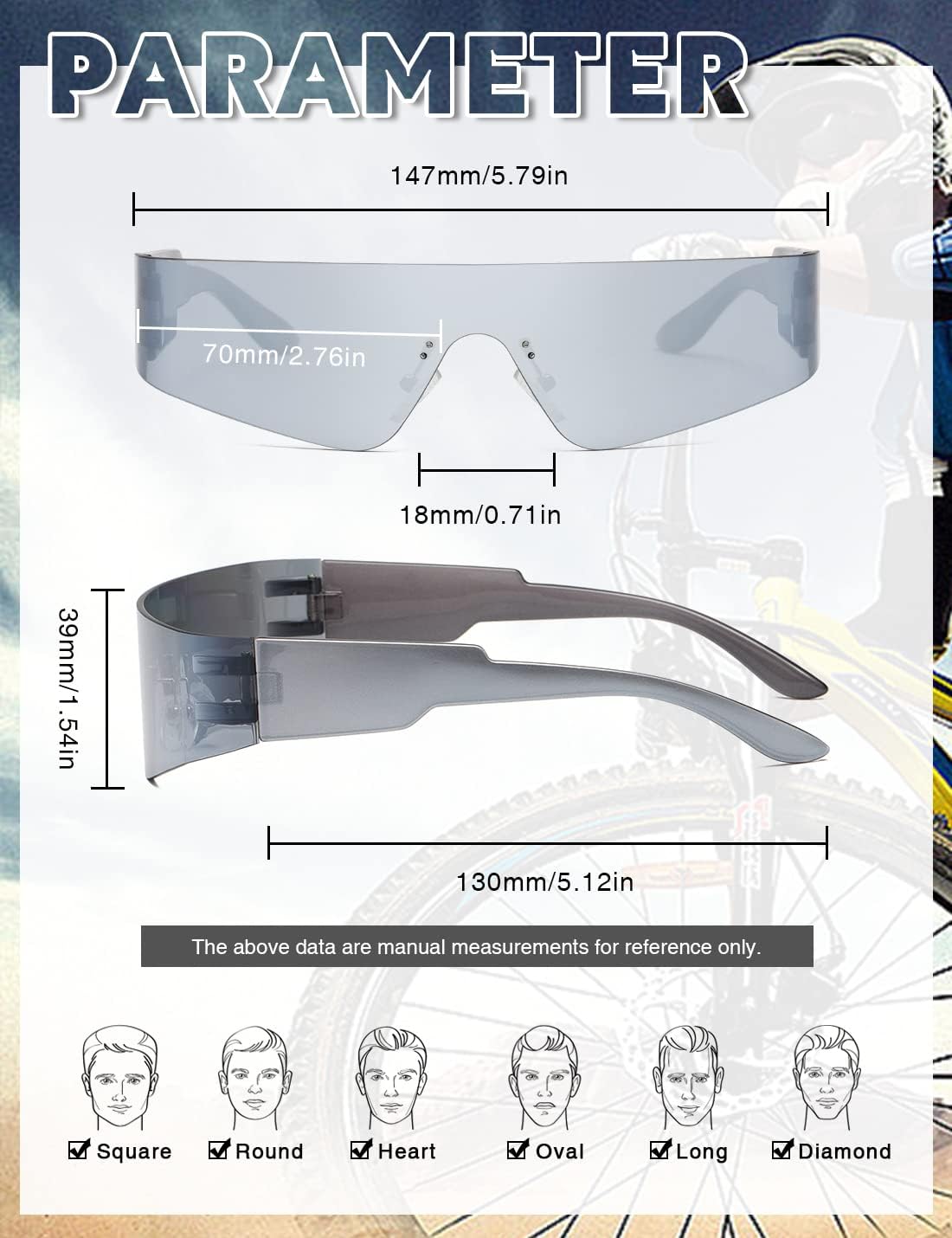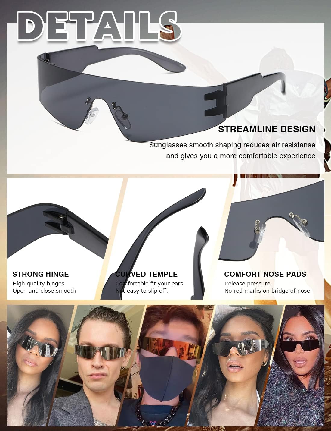 MASDUN Trendy Rimless Futuristic Wrap Around Sunglasses Women Men,Cyberpunk Visor Shades Fashion Sun Glasses (3 Pack)