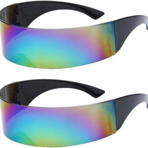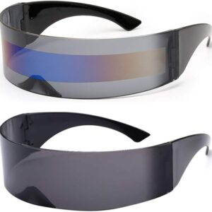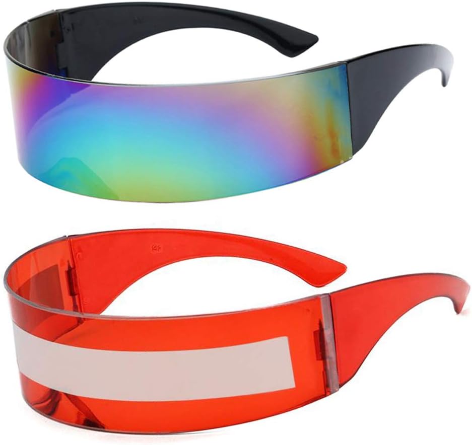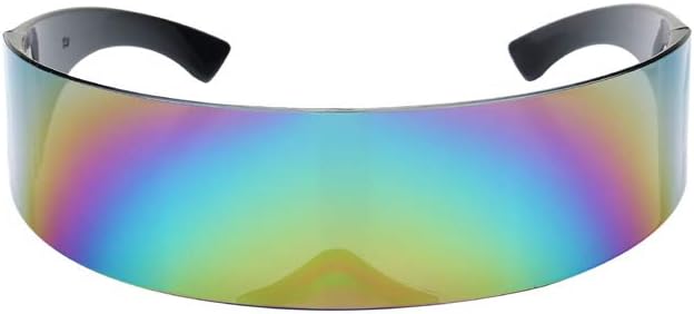 Non-Polarized, 100% Protection Against Harmful UVA/UVB Rays; Semi Translucent Mirrored Lens; Monoblock Shield Glasses; Futuristic Sunglass;