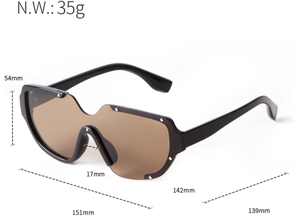 Rivet One Piece Sunglasses Women Men Futuristic Oversized Green Siamese Sun Glasses