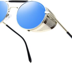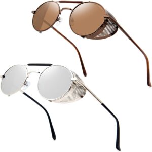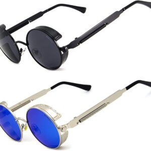 RONSOU Steampunk Style Round Vintage Polarized Sunglasses Retro Eyewear UV400 Protection Matel Frame