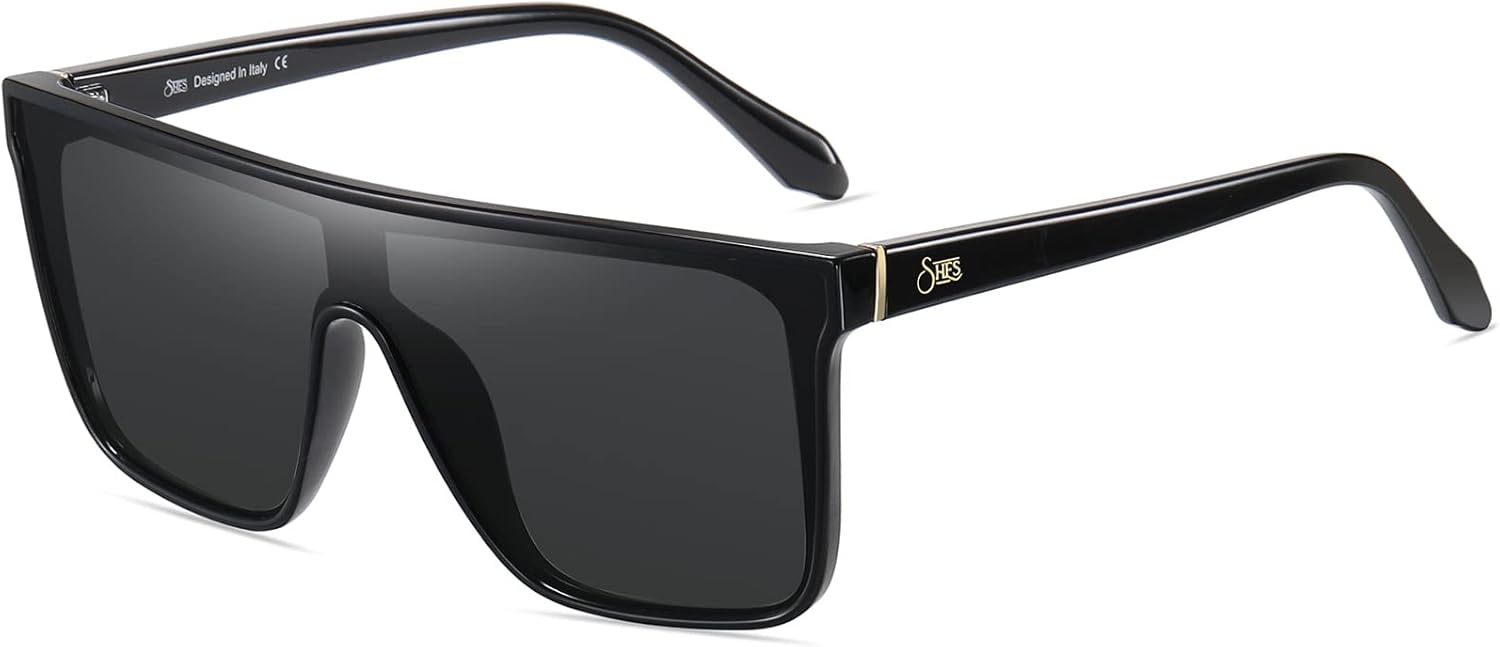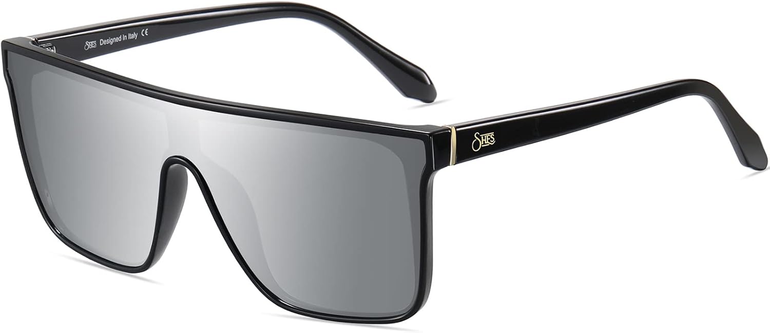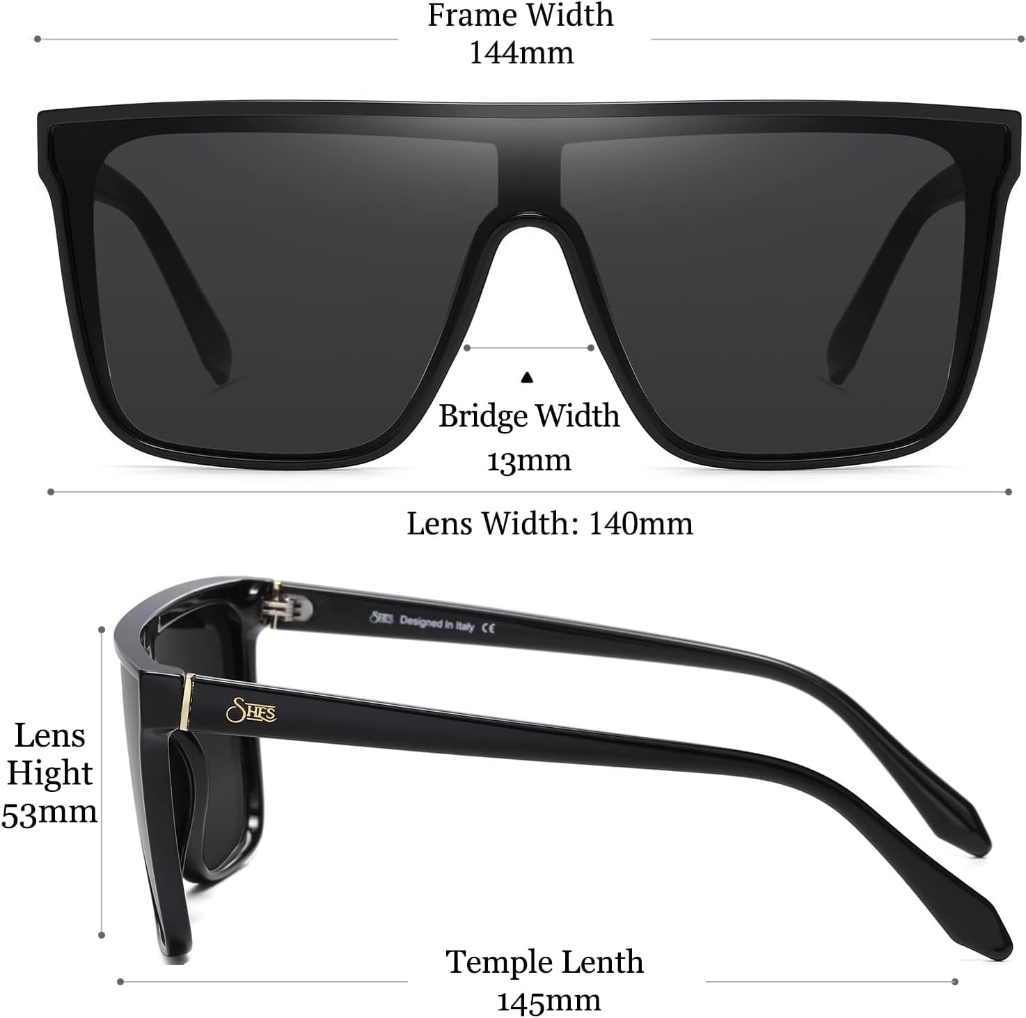 SHES Oversized Square Sunglasses for Women Flat Top Shield Shades Trendy Big Siamese Lens SH1008