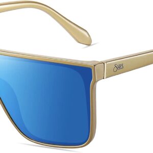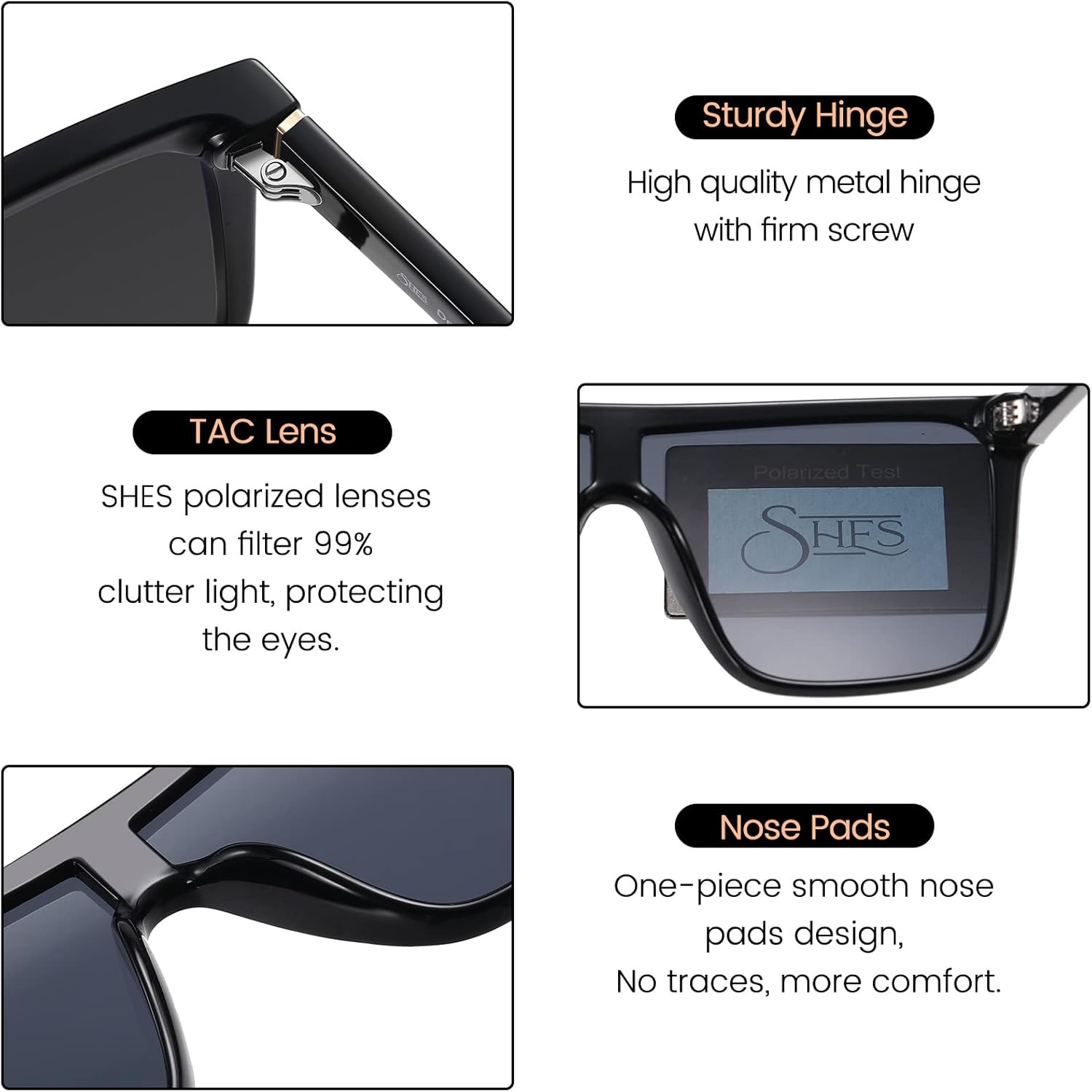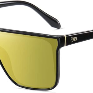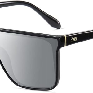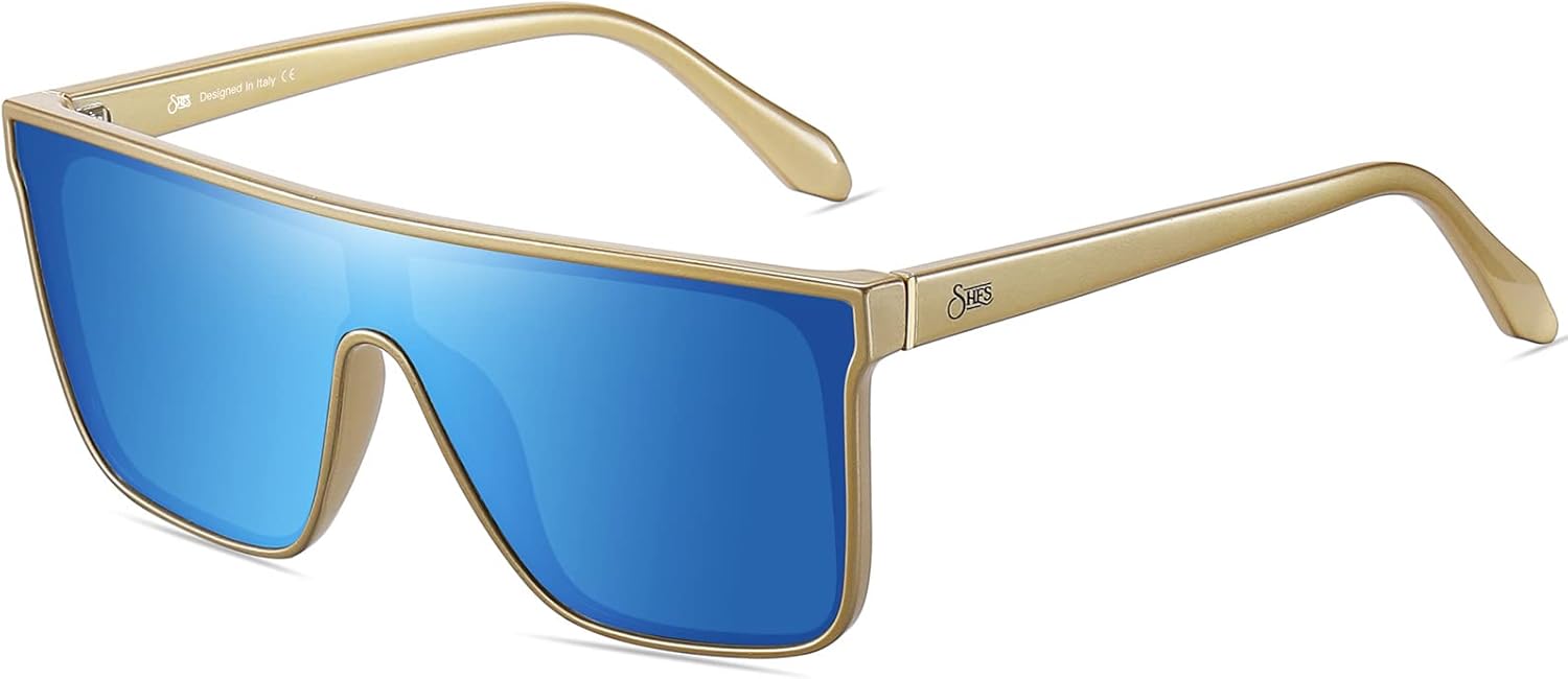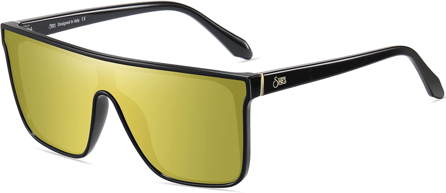 SHES Oversized Square Sunglasses for Women Flat Top Shield Shades Trendy Big Siamese Lens SH1008