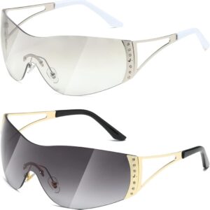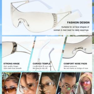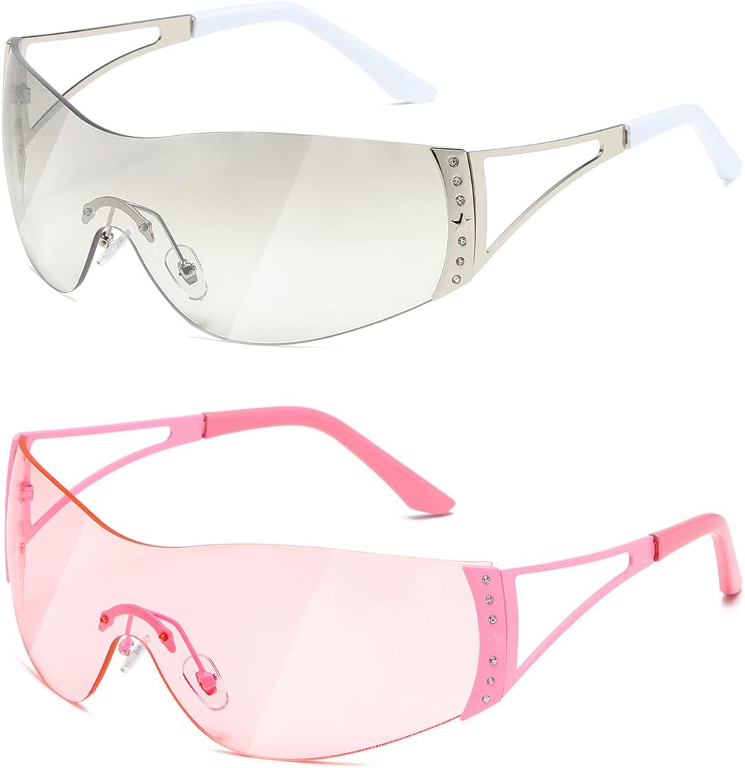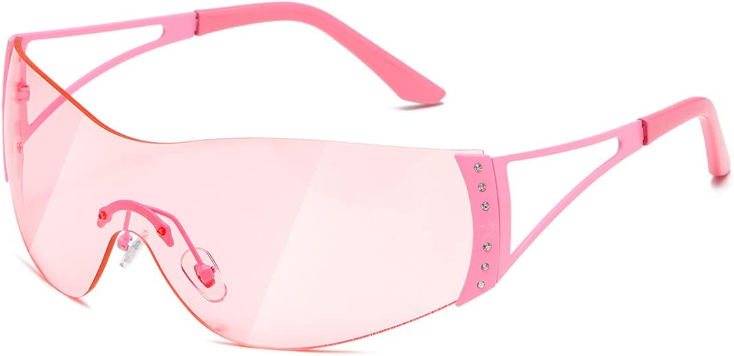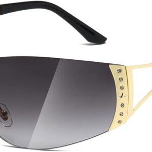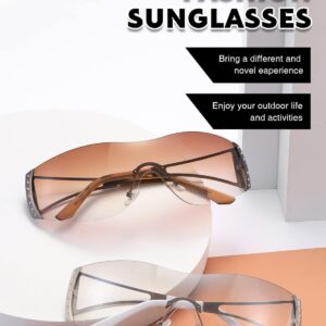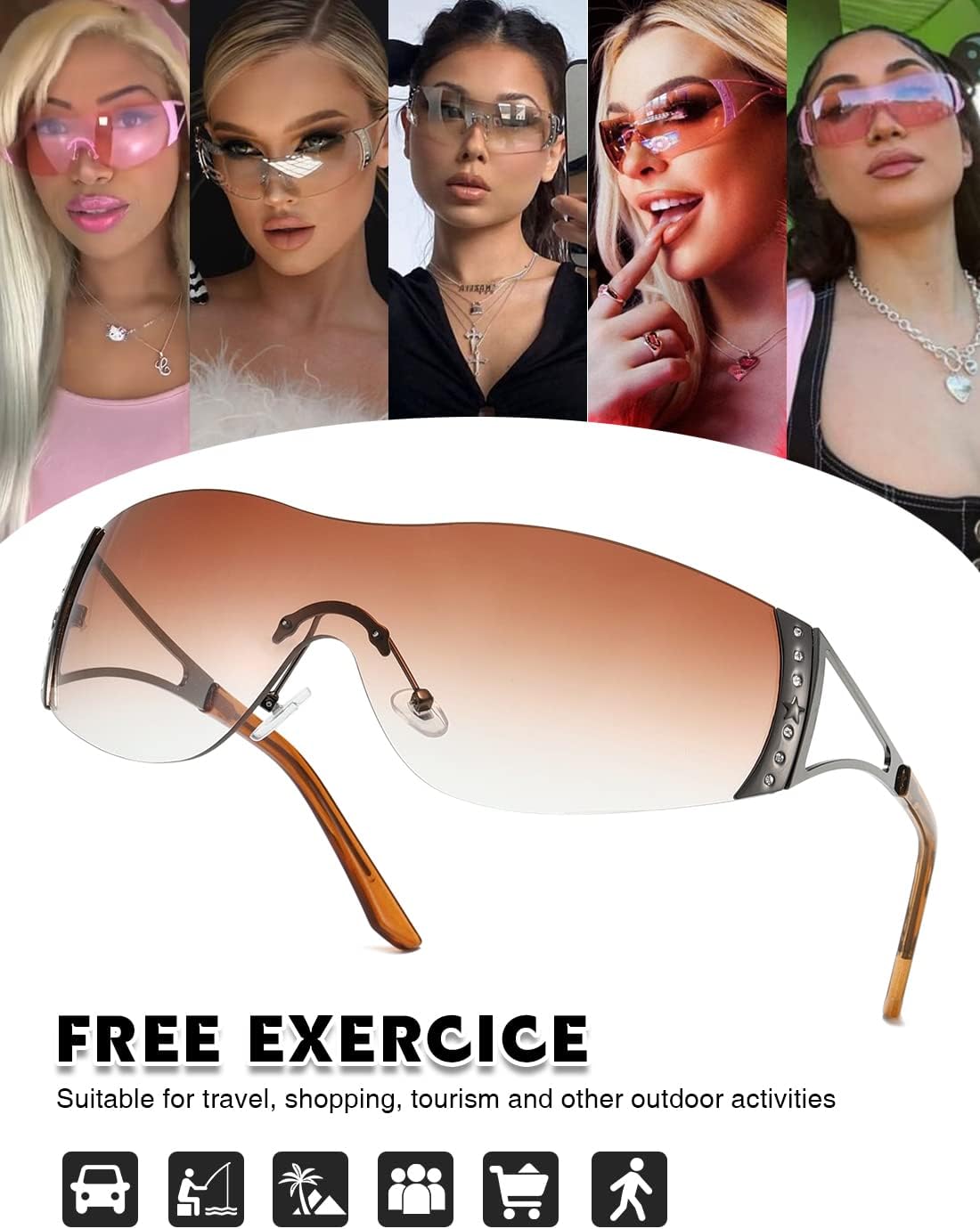 TIANYESY Y2K Sunglasses For Women Men Fashion Shield Rimless Wrap Around Sunglass Gradient Lens Trendy Oversize Sun Glasses