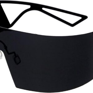 Designed with retro-futuristic vibes, these are the ultimate wraparound high fashion sunglasses. The full coverage shield sunglasses are crafted with premier polycarbonate lenses. Make a statement while on vacation, on the slopes, or at your next party. Made with UV400 lenses for full protection.